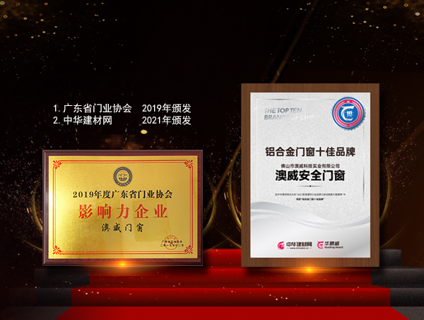 ① 中國商品質量名優(yōu)品牌推廣中心 2010年頒發(fā)《商品與質量》消費市場調查中心 2010年頒發(fā) ② 廣東省門業(yè)協(xié)會 2017年頒發(fā)